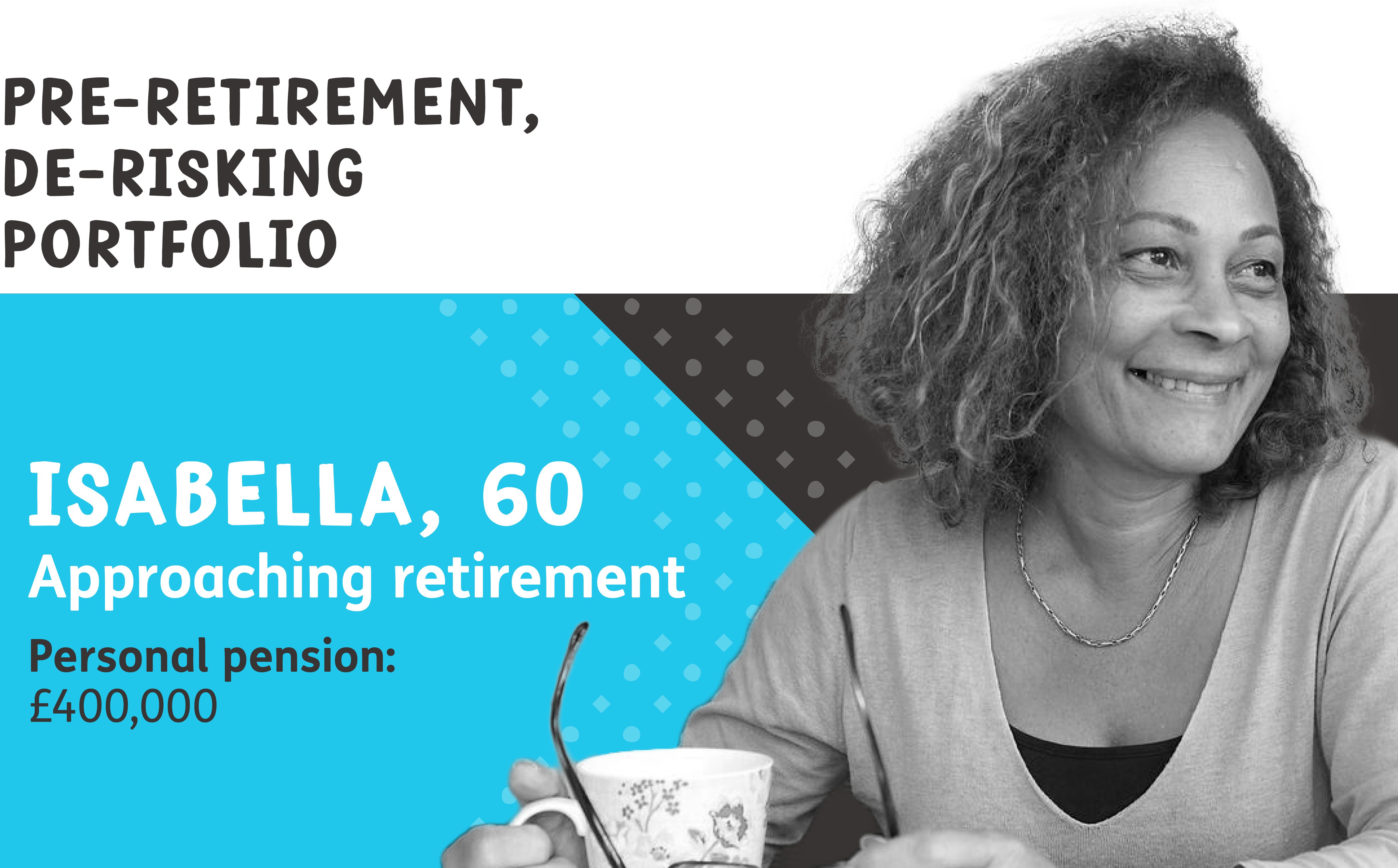 Isabella is aged 60, has £400,000 in her trust-based personal pension and plans to retire in five years. She’s concerned about market volatility impacting her personal pension in the run-up to retirement, but doesn’t want to exit existing investment strategies entirely.
