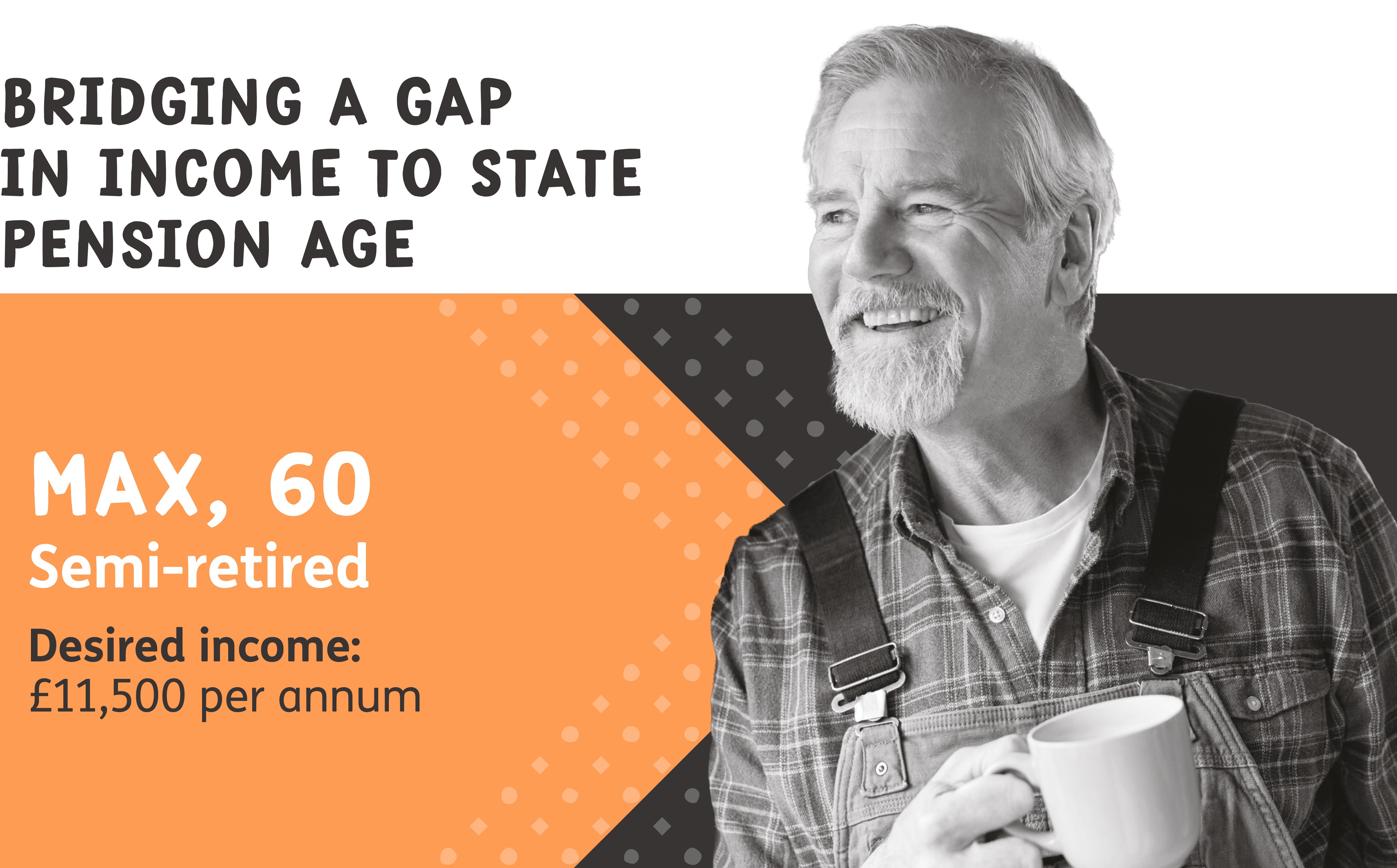 Max is aged 60 and he's semi-retired. He needs £11,500 per year until his State Pension starts in seven years. He wants to avoid drawing down on his portfolio in volatile markets.